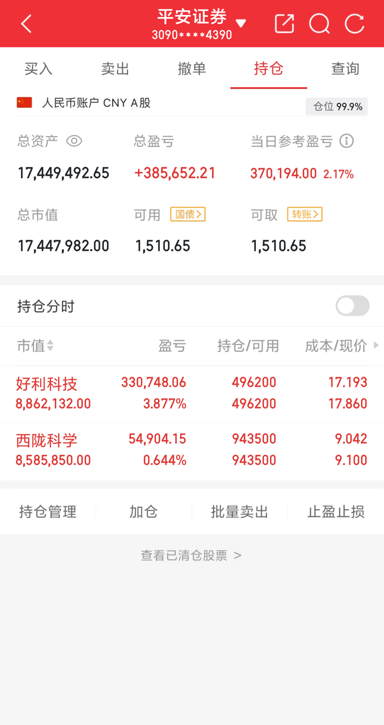 豪哥个人笔记;西陇科学继续格局中,上周五的:好利科技目前收益小3个点多,不着急这