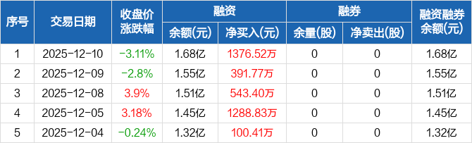好利科技:连续5日融资净买入累计3700.93万元(12-10)