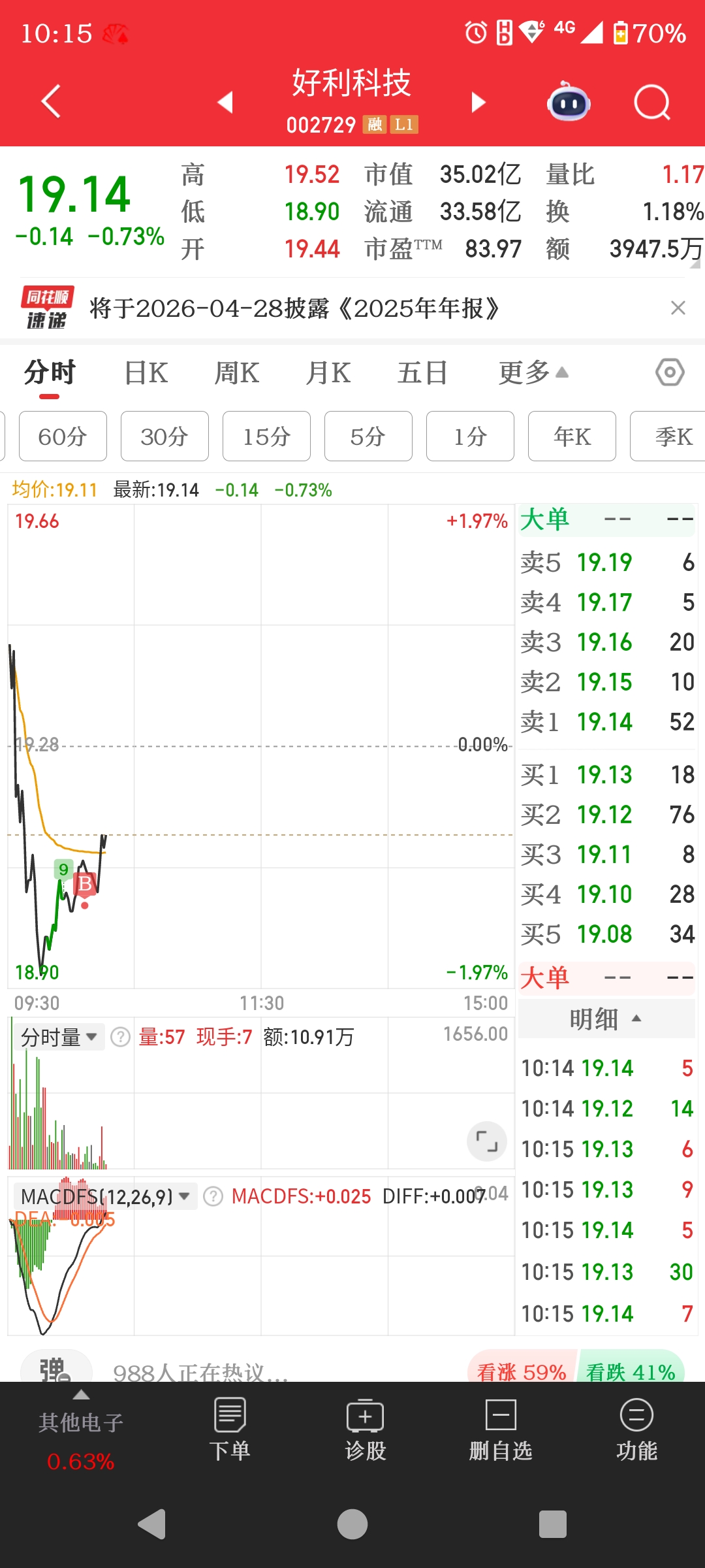 $好利科技(SZ002729)$ 虚空买入了,牛逼