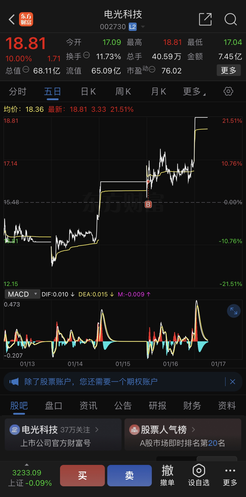 温馨提示: 1.根据《证券法》规定,禁止编造、传播虚假信息或者误导性信息,扰乱证券市场;2.用户在本社区发表的所有资料、言论等仅代表个人观点,与本网站立场无关,不对您构成任何投资建议。用户应基于自己的独立判断,自行决定证券投资并承担相应风险。《东方财富社区管理规定》