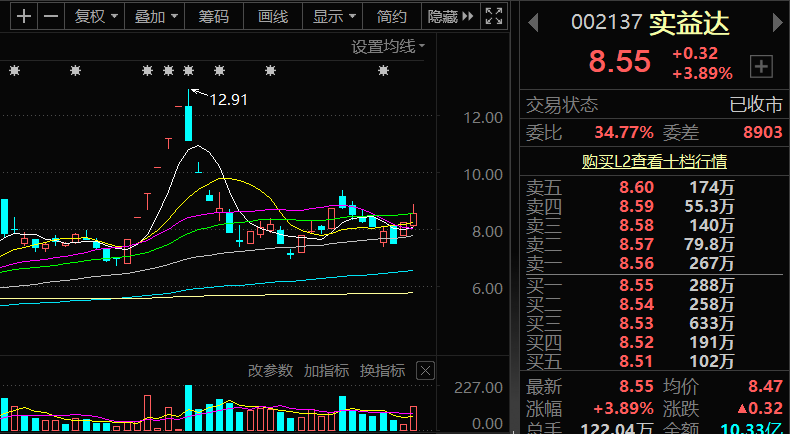 实益达,电子元件+半导体+华为概念,今天早盘先是小幅低开,整体是低于市场预期的,所以暂时不好打卡,这个我在早盘策略中讲到,今天早盘如果是小幅高开才符合预期,尽管今天股价也是是涨了,早盘打卡的话也有利润,但是不符合我的预期我就没考虑。包括今天收盘也暂时没有暂稳30日均线,所以还是先多观察一两天。
