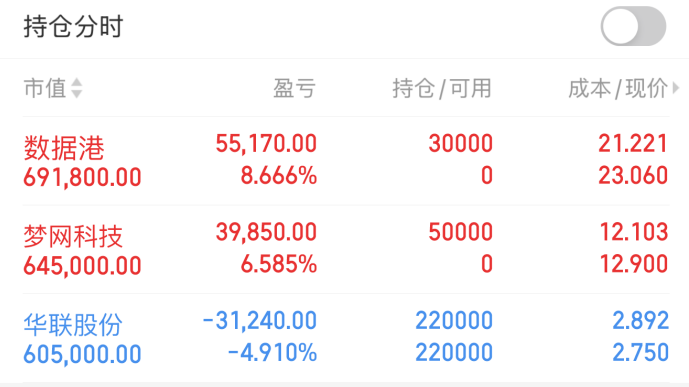 华联股份:商业百货+新零售+低价股概念,今天早盘继续一字跌停开的盘,所以后面虽然有反弹,但力度都不是很强,直到收盘也差不多是收在跌停附近。本来今天打算先下岗的,但看到商业百货经历了连续调整后,今天也开始出现止跌企稳,日内也有资J开始回流的迹象。所以还是想多拿一天,看明天怎么走,再决定能不能继续拿。