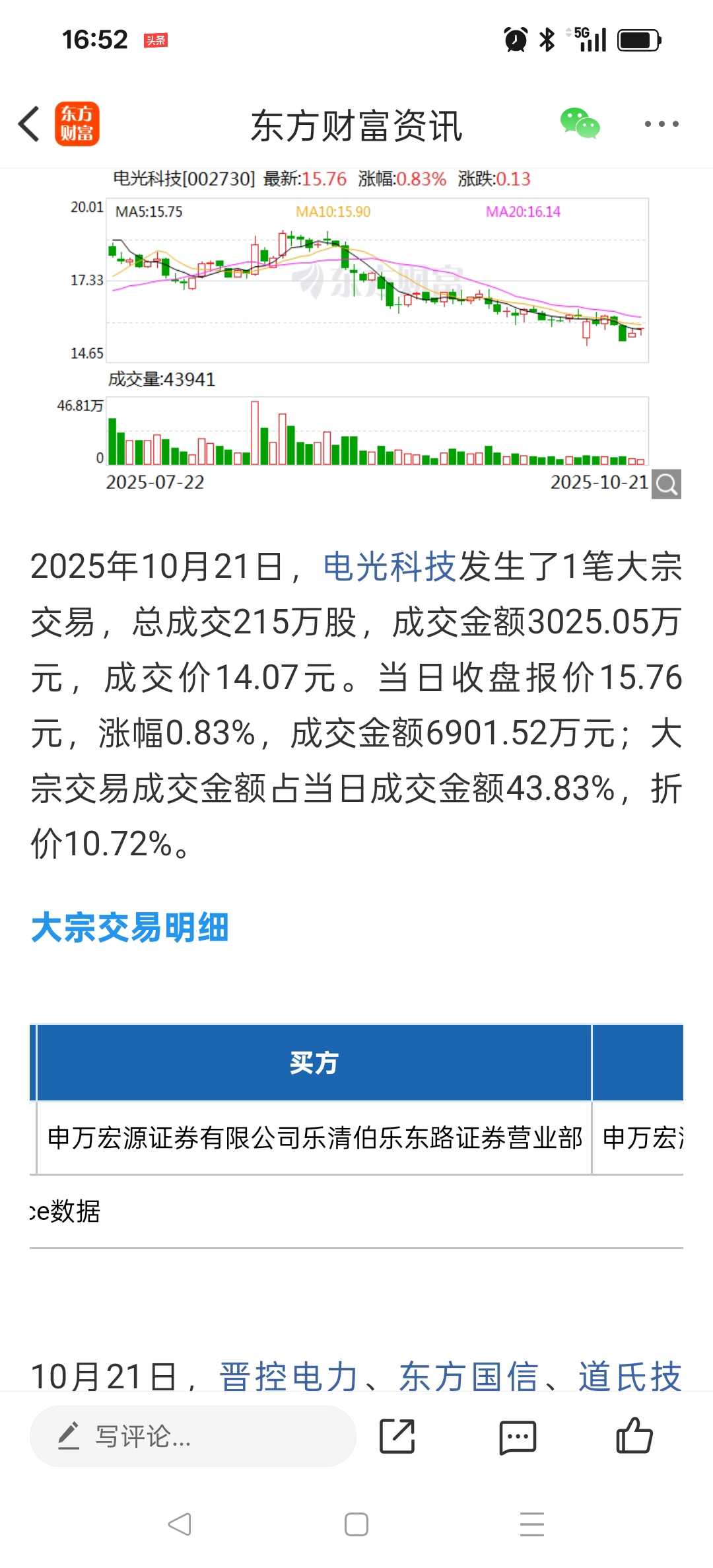 $电光科技(SZ002730)$ 不懂就问,哪位大师能分析一下,大宗交易买方卖方同一家是什么意思?是左右手互倒的意思吗?