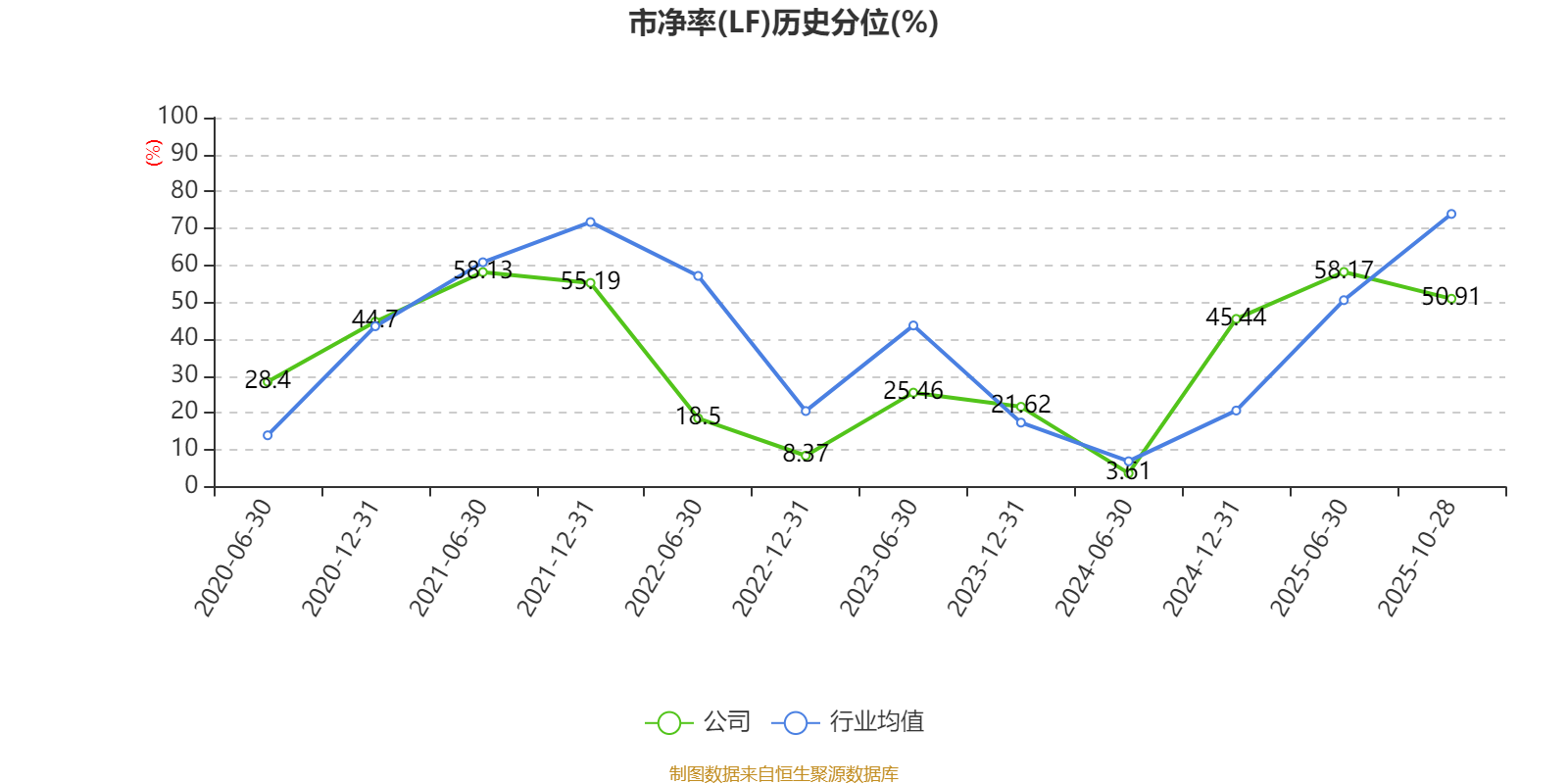 市盈率、市净率为负时,不显示当期分位数,会导致折线图中断。