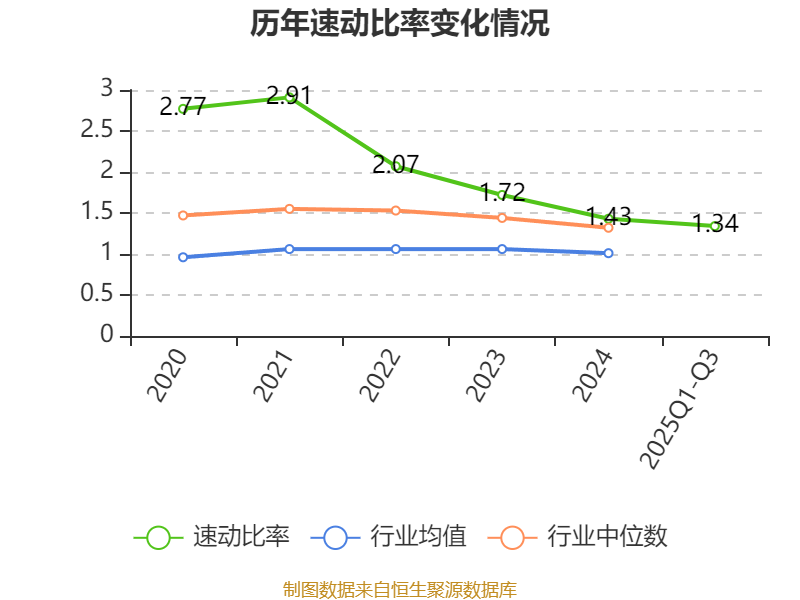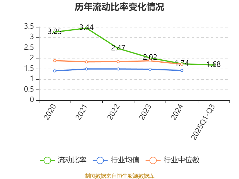 2025年前三季度,公司流动比率为1.68,速动比率为1.34。