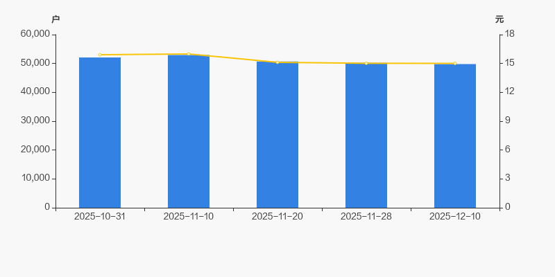 自2025年11月10日以来,公司股东户数连续3期下降,截至目前减幅为5.93%。2025年11月10日至2025年12月10日区间股价下降6.13%。
