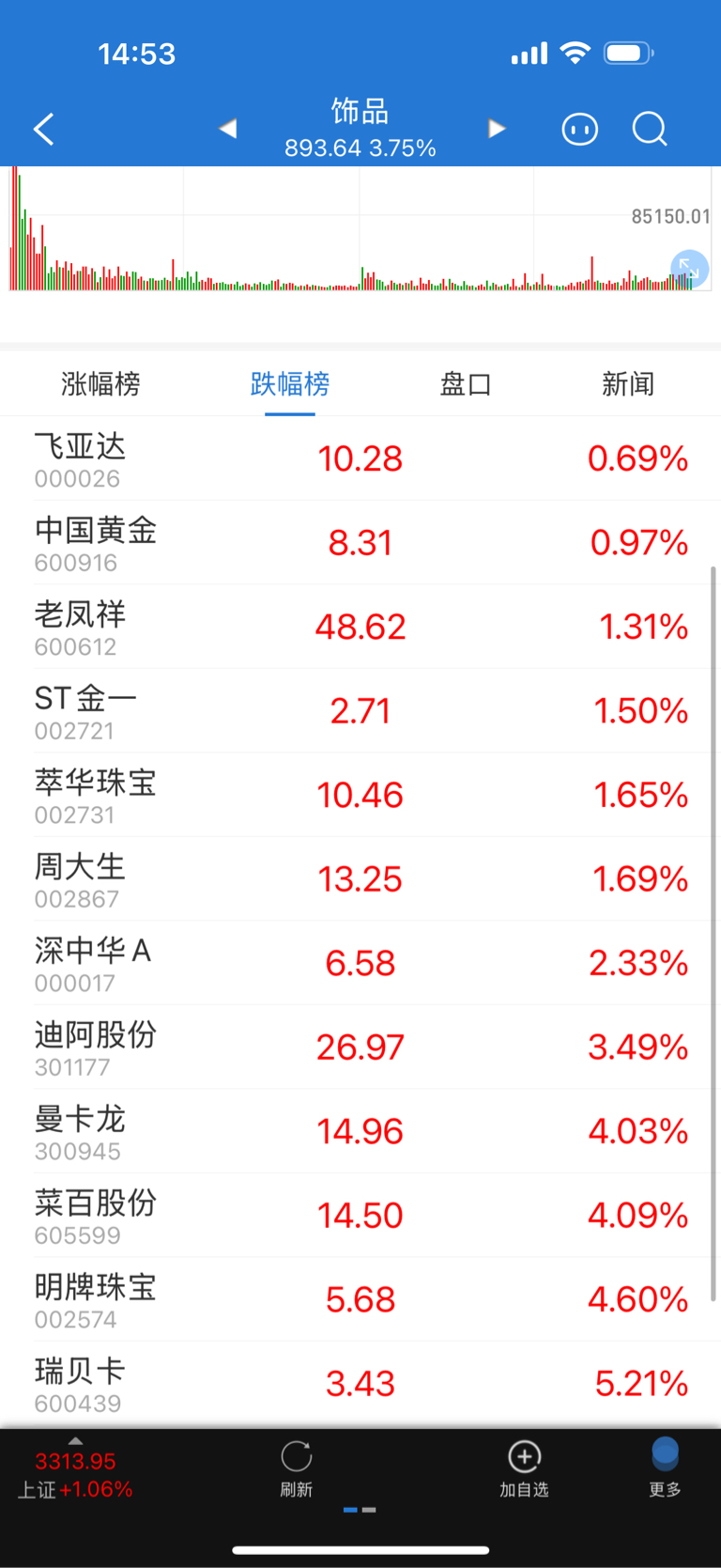 $萃华珠宝(SZ002731)$ 说实话这股的庄真有病。看看板块垫底的全是一季度业绩爆雷大幅下滑的。这里业绩是大增。不应该跟曼卡龙?潮宏基?莱绅?