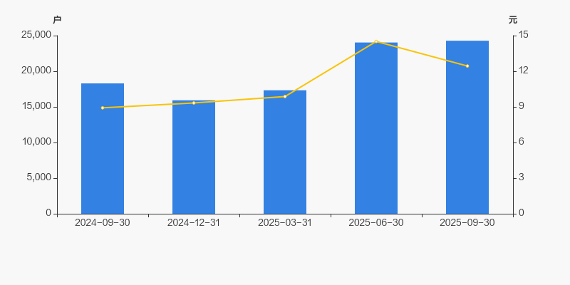 自2024年12月31日以来,公司股东户数连续3期上涨,截至目前增幅为52.50%。2024年12月31日至2025年9月30日区间股价上涨33.33%。