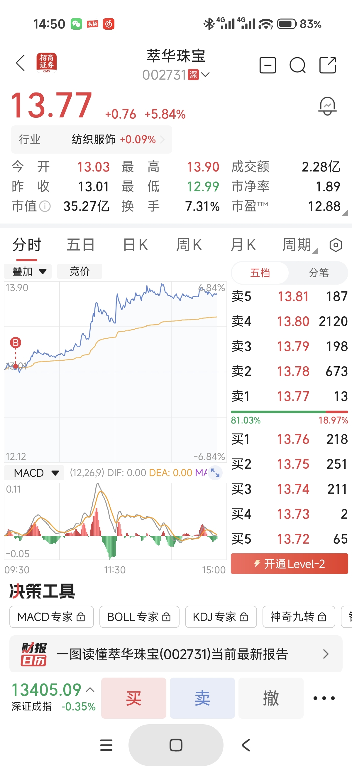 $萃华珠宝(SZ002731)$ 轻仓抽奖这么成功