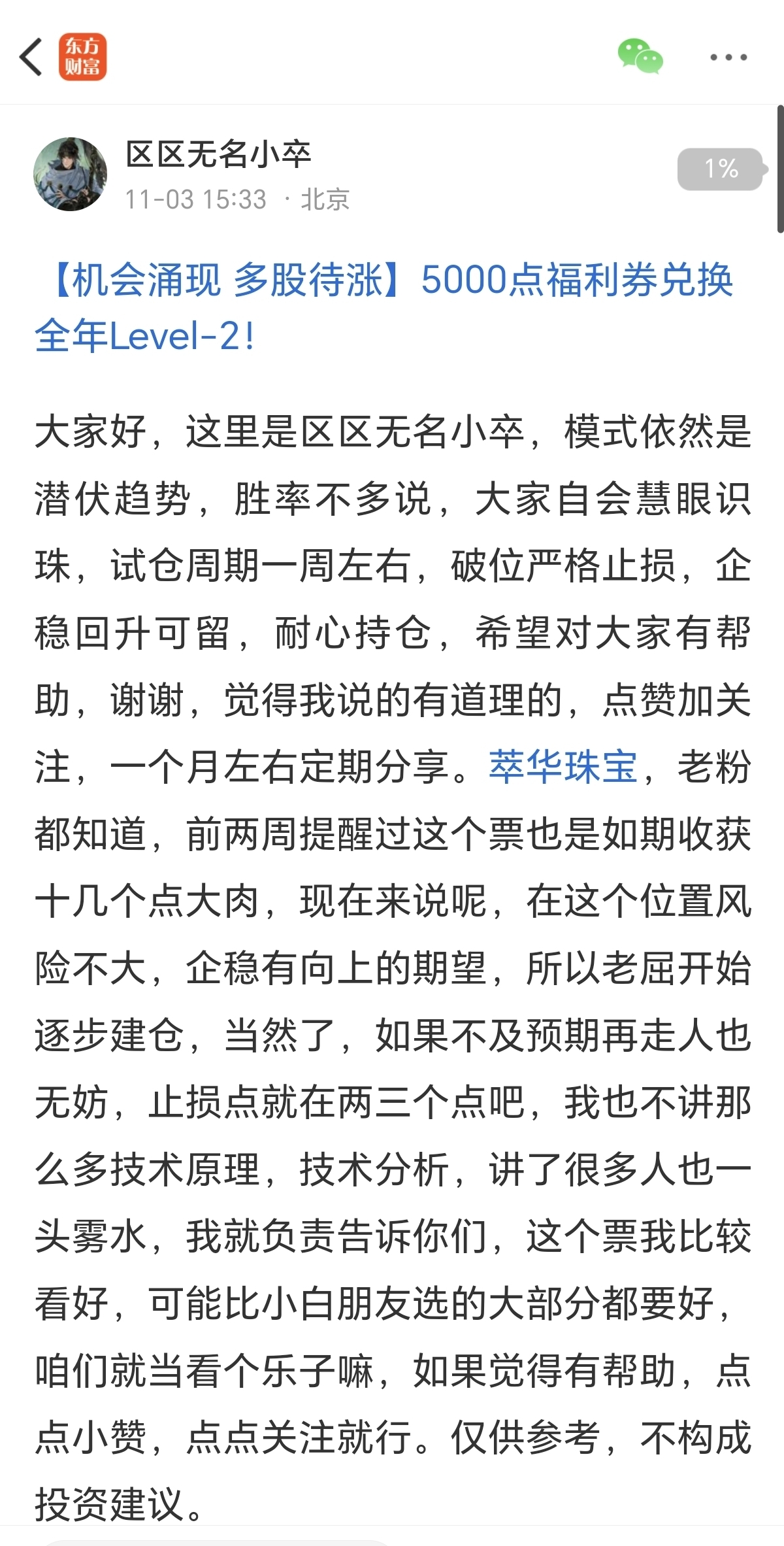 $萃华珠宝(SZ002731)$ 无需多言,这支票老区提醒后一直跟着的50个点大肉,可惜最近冻蛋糕被禁言,点赞加关注,持续分享