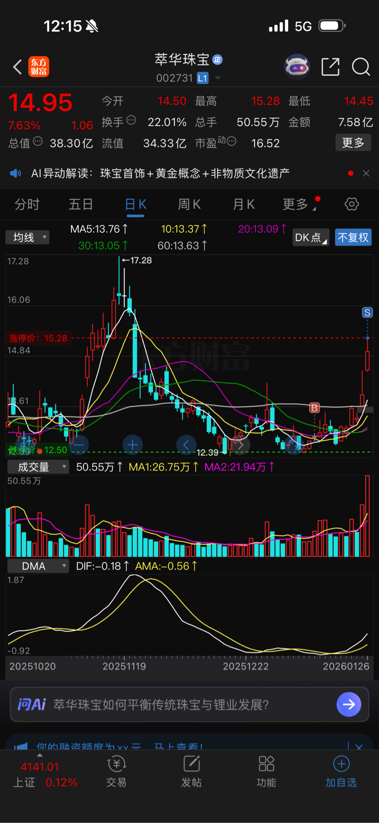$萃华珠宝(SZ002731)$ 接近20个点,go了,剩下的各位大佬接力!