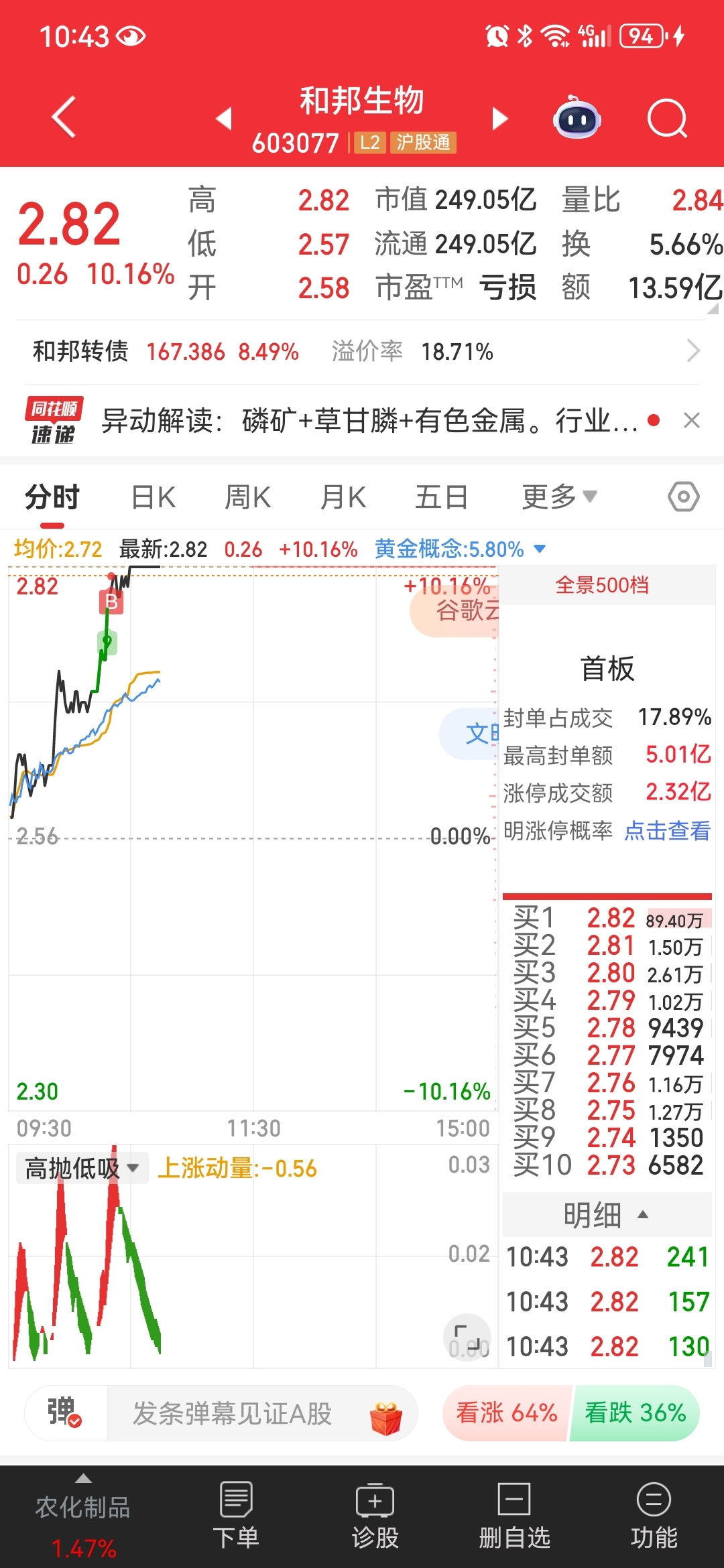 幸好从你这里出来去了和邦生物,明天还有个溢价,你这个庄实在是实力不行,连昨天的量