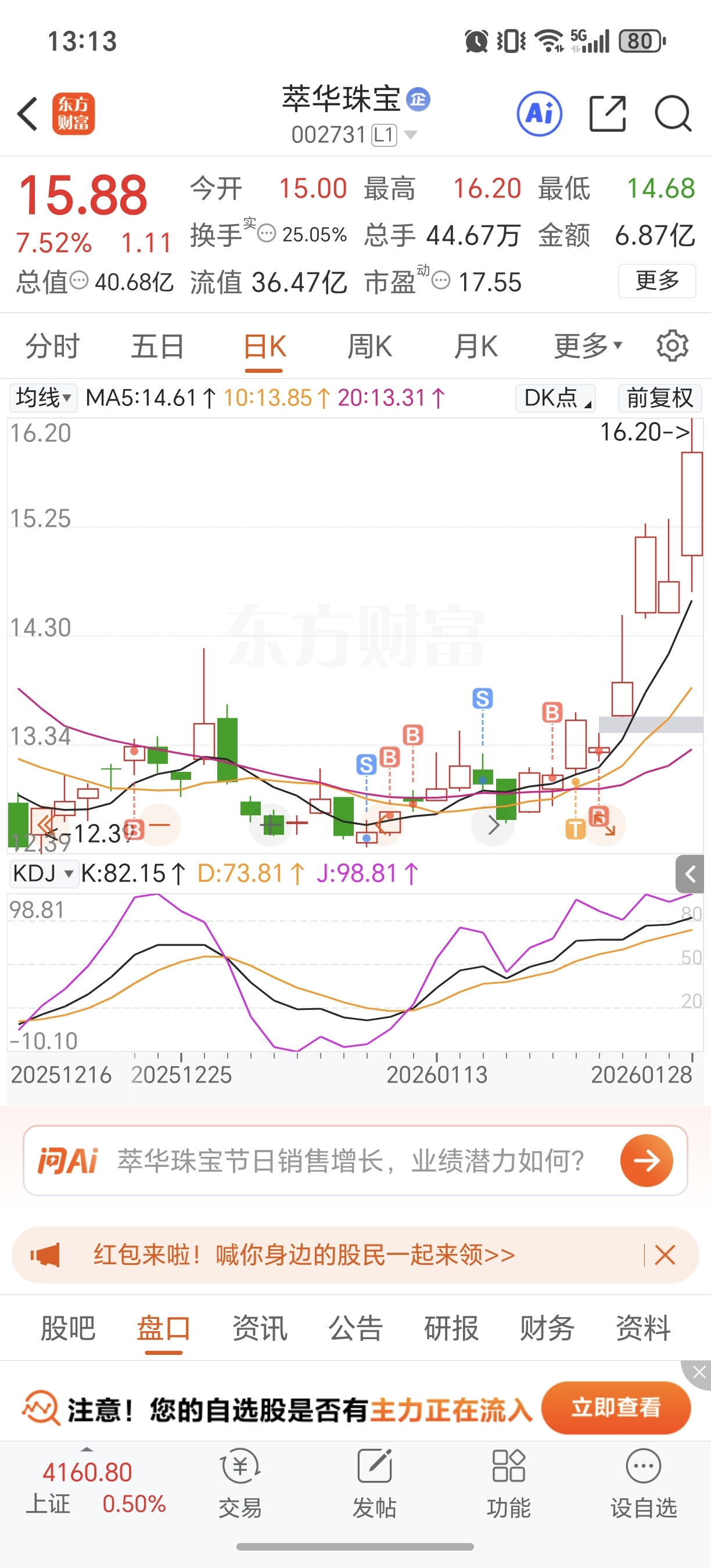$萃华珠宝(SZ002731)$