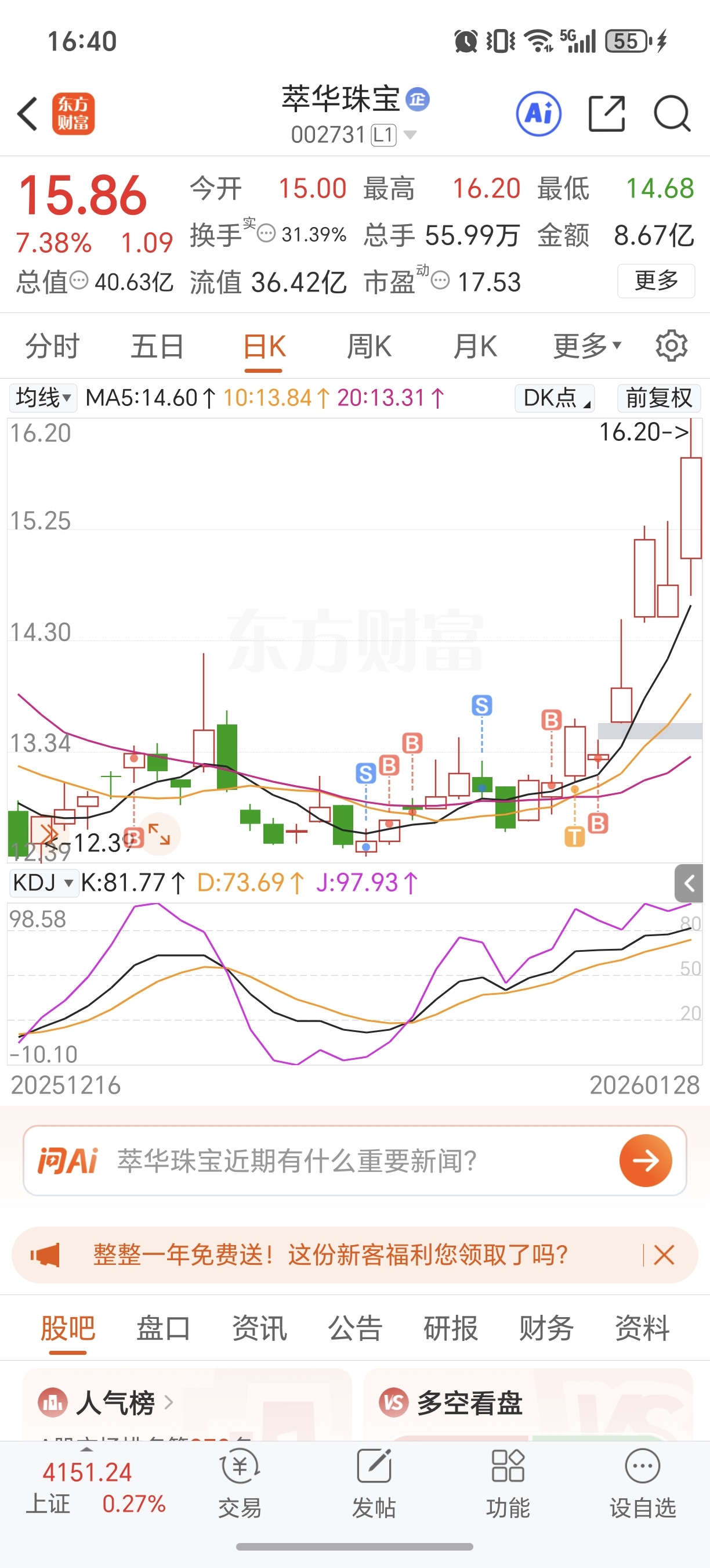 $萃华珠宝(SZ002731)$ 干就完了