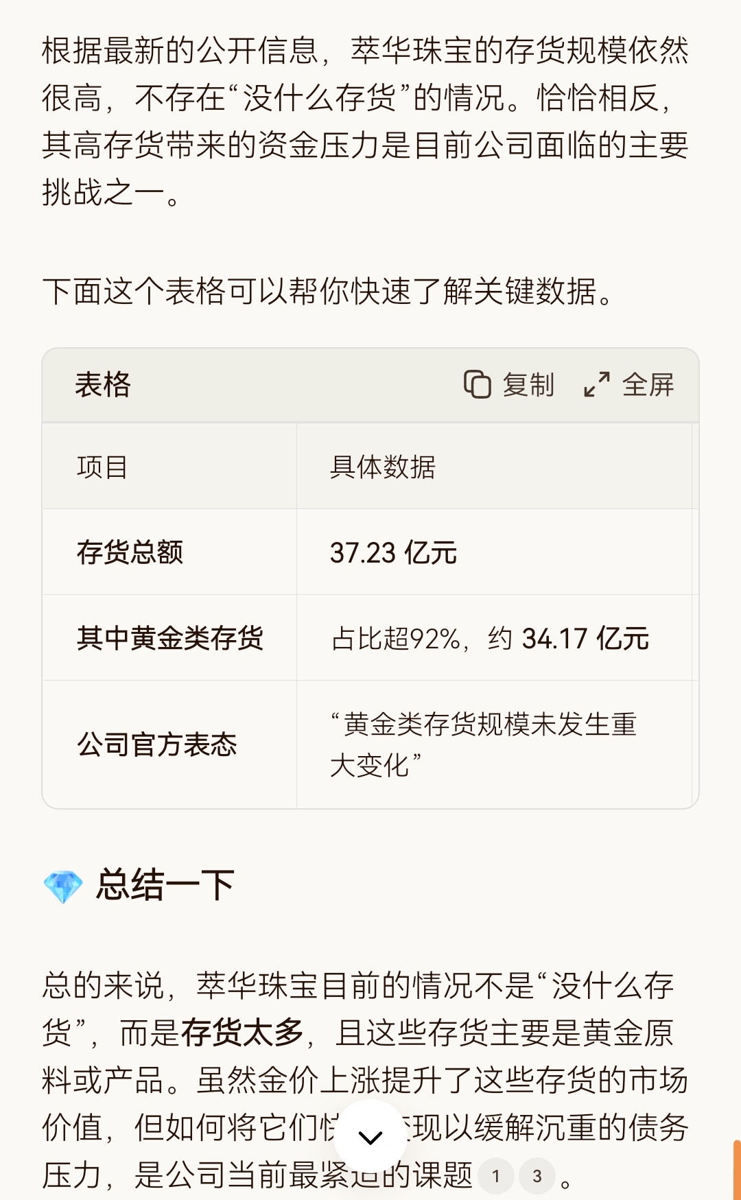 $萃华珠宝(SZ002731)$ 个人观点黄金还是不愁卖的九月三十号还有那么多黄金存货
