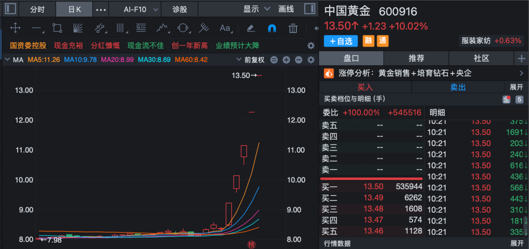 盘初,贵金属概念持续活跃,中国黄金5连板,湖南黄金4连板,四川黄金、晓程科技、豫光金铅、中金黄金、赤峰黄金、湖南白银、山东黄金、山金国际、兴业银锡高开。