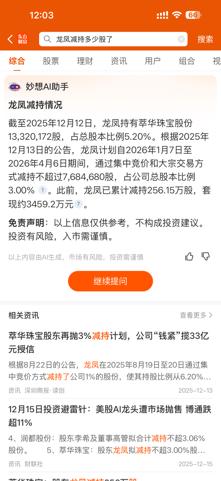 $萃华珠宝(SZ002731)$ 减持了三分之一了,问题不大