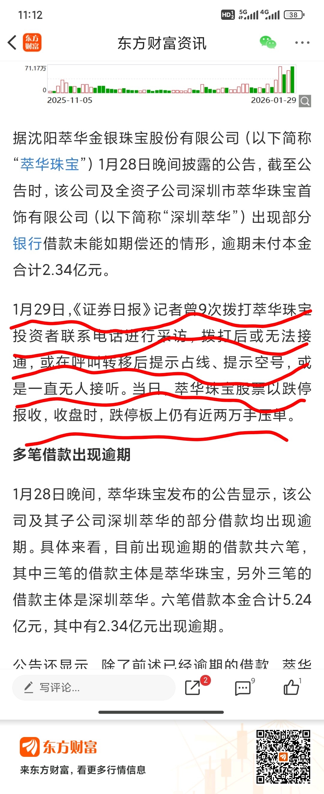 $萃华珠宝(SZ002731)$ 今天28的换手,这出货手法真牛!今天证券日报打了9次电话都联系不上公司,欠钱也不肯还,估计都打包黄金跑了,加上现在期货大跌,估计得吃三四个跌停才出的来了!怎么办怎么办!