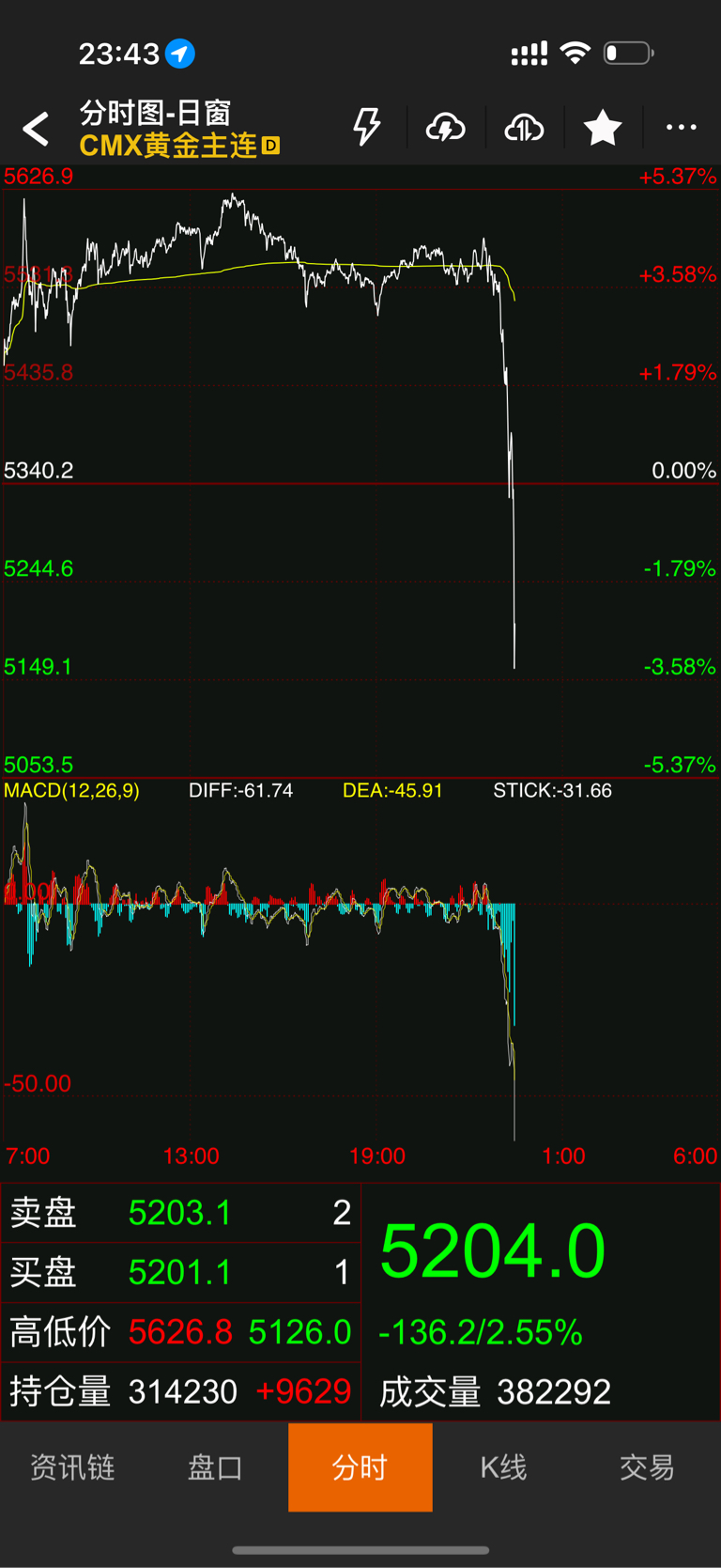 $萃华珠宝(SZ002731)$ 黄金大暴跌,明天翠花继续跌停