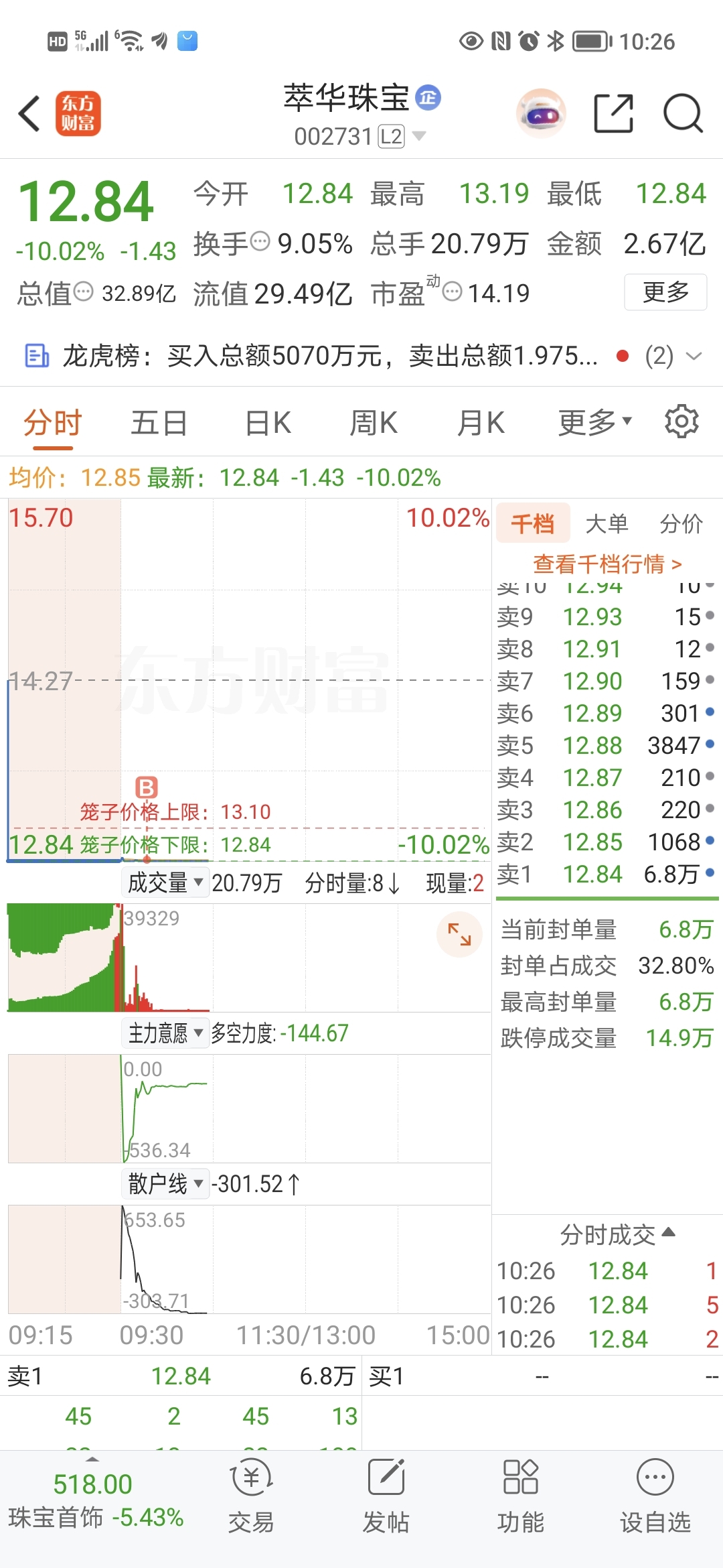 $萃华珠宝(SZ002731)$ 最好周一再来一个