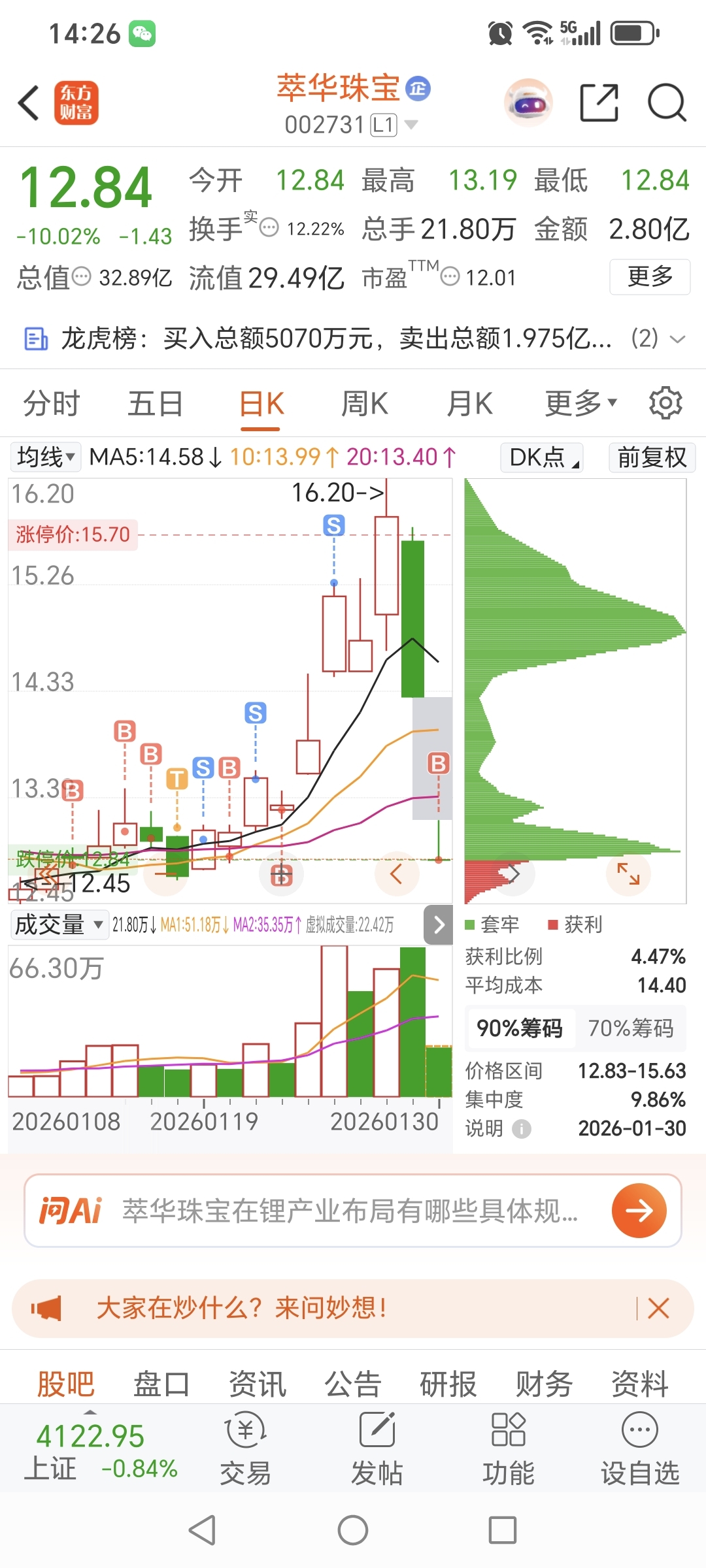 $萃华珠宝(SZ002731)$ 不贪多,跑的时候干脆利落!!我又回来了,再来一个跌停我继续加仓
