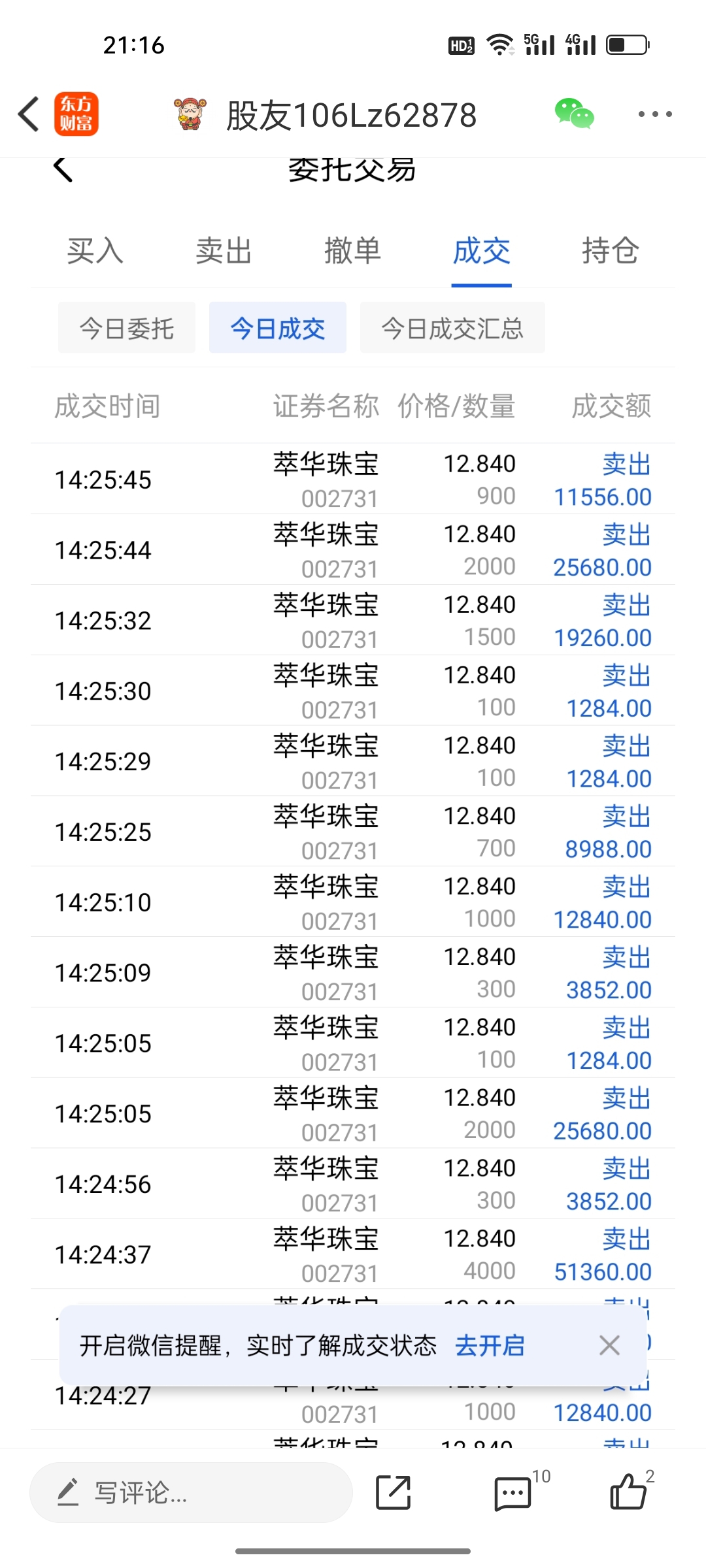 $萃华珠宝(SZ002731)$ 奶奶的今天割了一身轻松,明明昨天想抄黄金底,今天吃了个板
