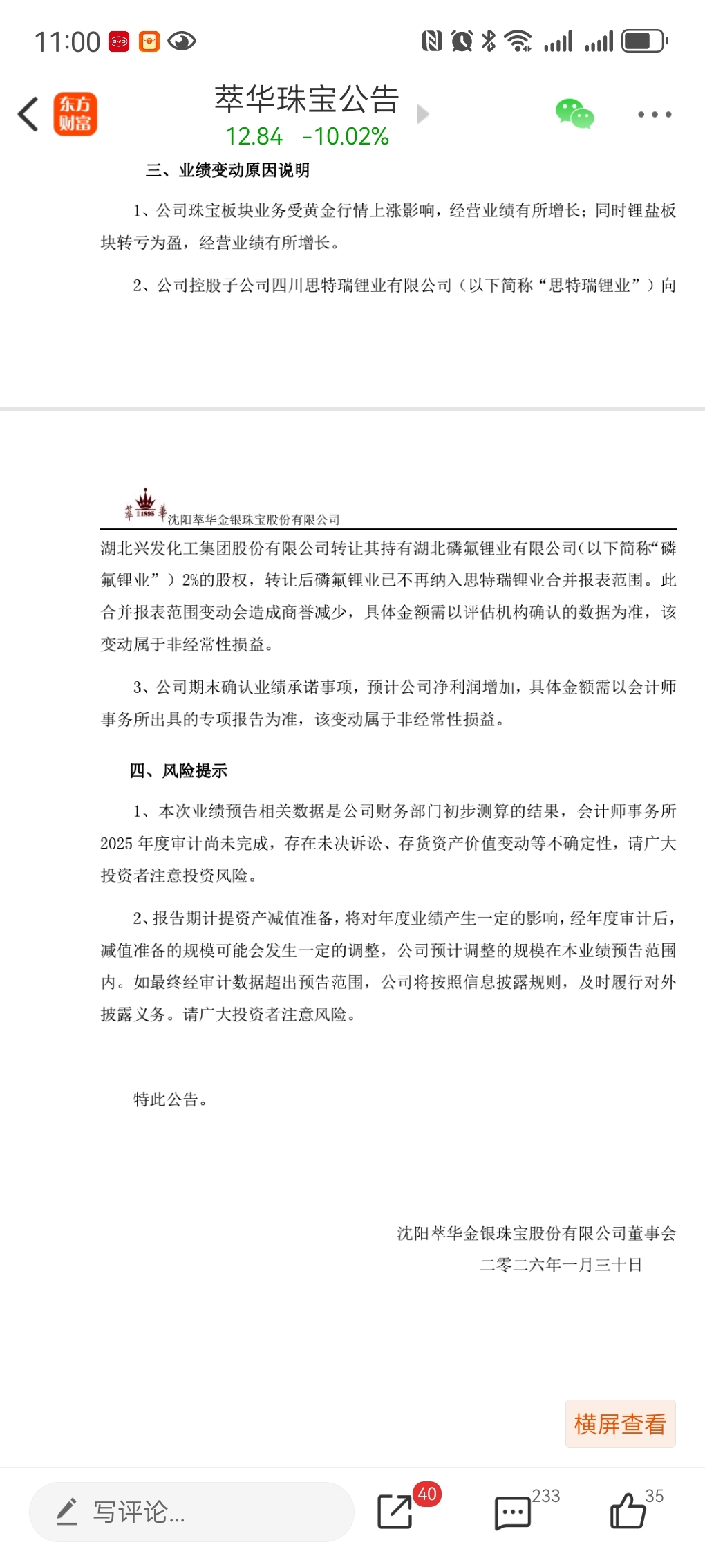 $萃华珠宝(SZ002731)$ 为什么不卖黄金还贷款,仔细看看第三条,业绩补偿差不多有3.5亿,这个审计以后就会到账,如果现在卖黄金还贷款,那么这个补偿进来的钱有什么用,所以现在的逾期,不是没有钱还贷款,是时间赶不上而已。钱多的是。