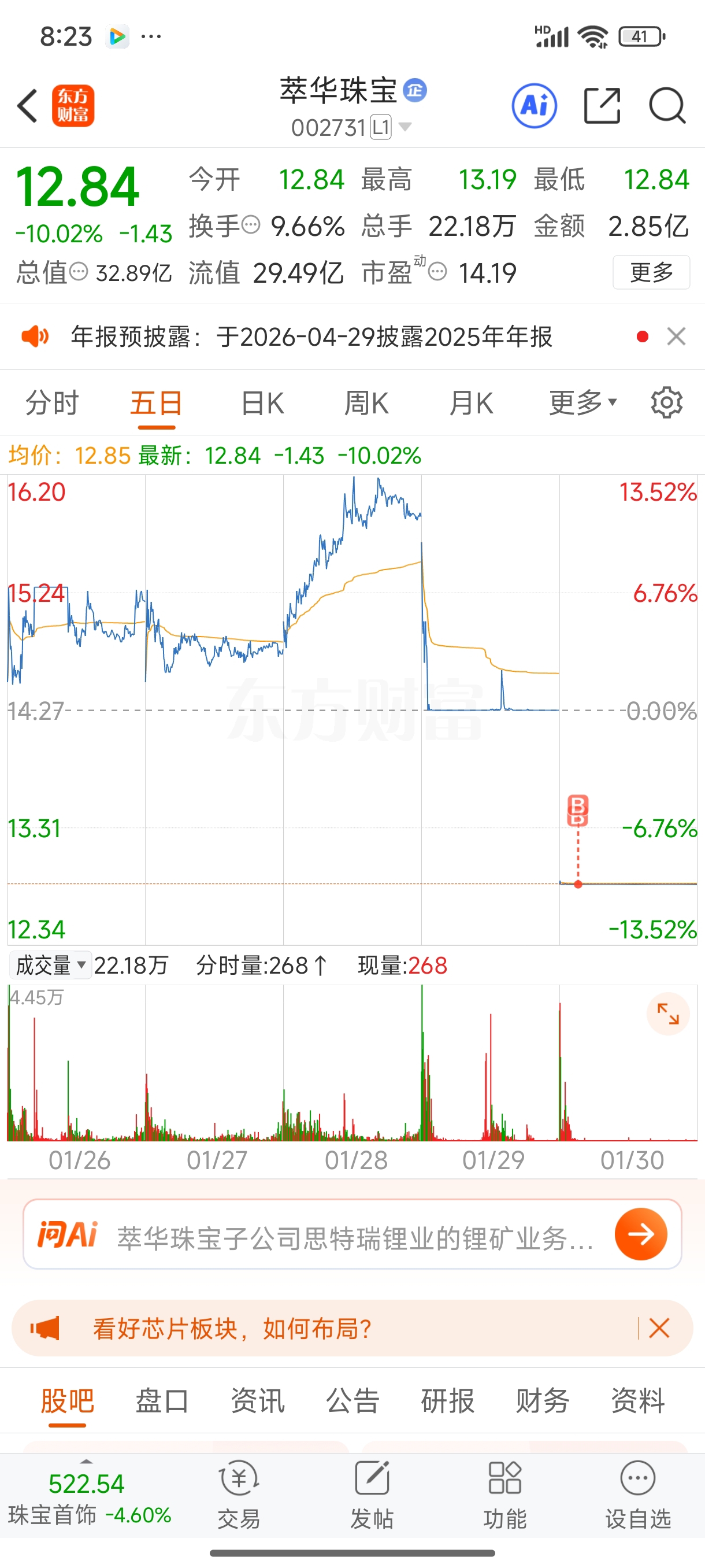 $萃华珠宝(SZ002731)$ 老天爷啊,昨天进来抄底资金,怎么办?