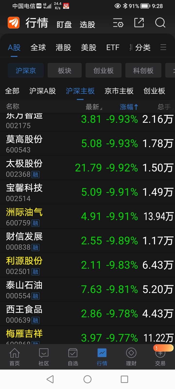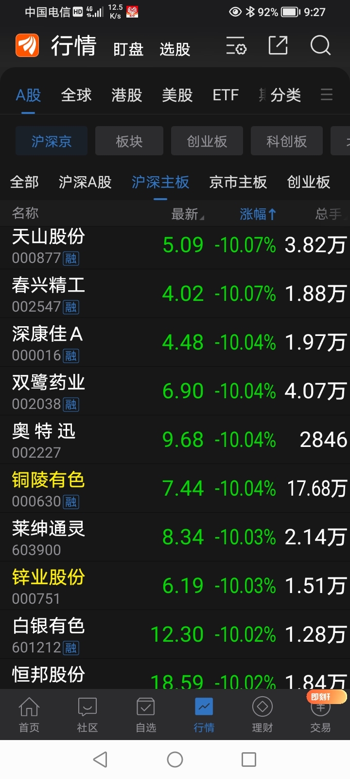 今天有多少股票跌停?