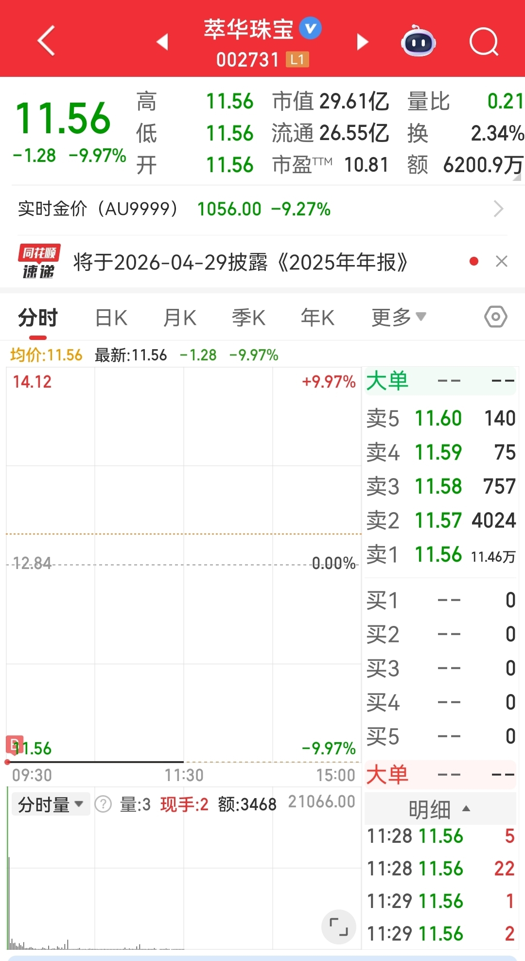 说到做到,集合竞价就挂单买入了,不翻倍不走人。在这个价位上,以后再跌就继续加仓。