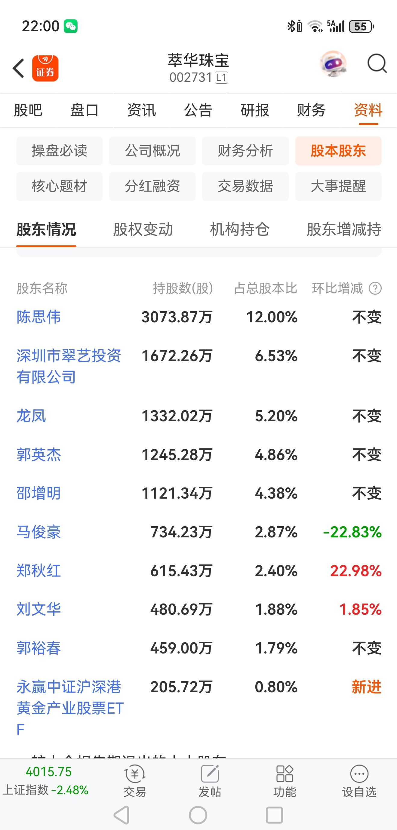 $萃华珠宝(SZ002731)$