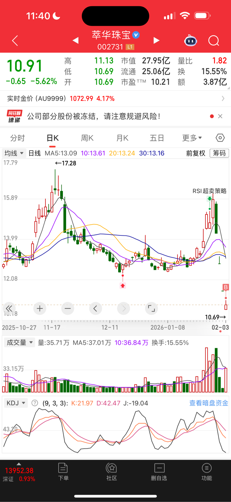 $萃华珠宝(SZ002731)$ 来个底仓,这样跌爆雷都没遇到过,除非直接退市