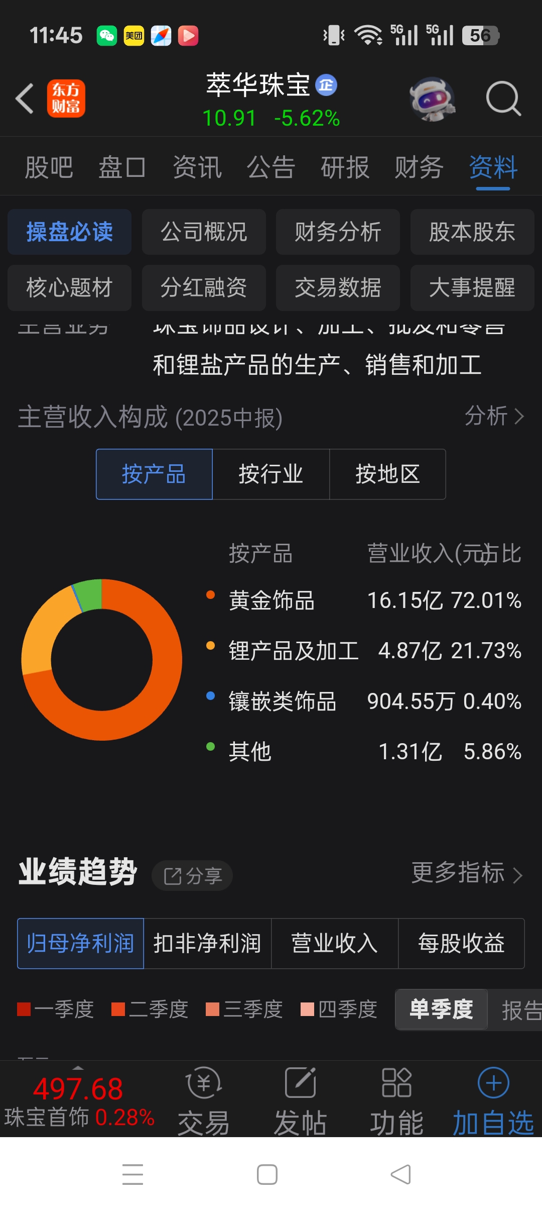 $萃华珠宝(SZ002731)$ 锂业收入也不错喔,(请文明评论)