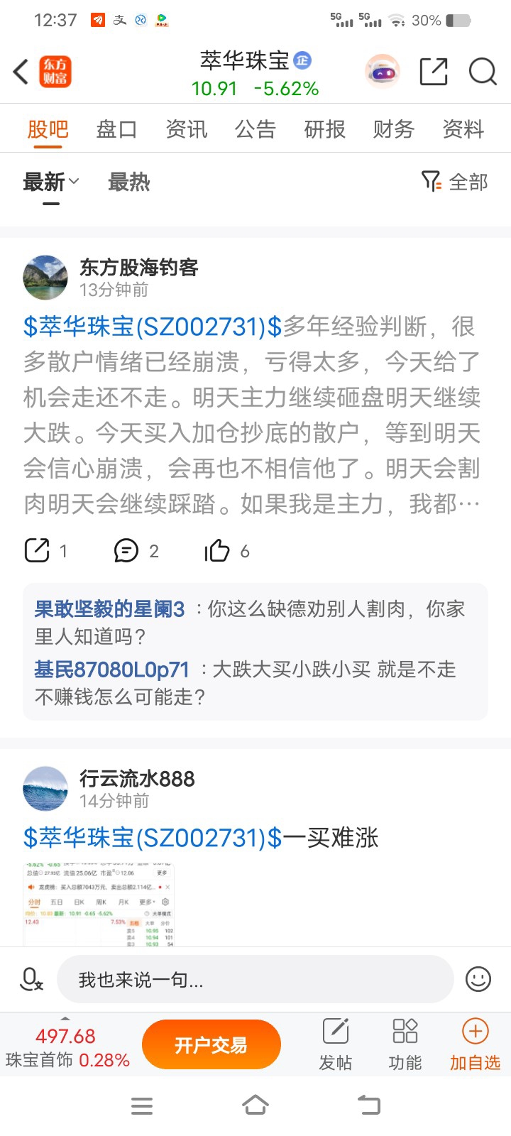 $萃华珠宝(SZ002731)$ 快点割,不割完主力不拉红,一拉红你还会跑,不会,好继续砸盘,割完割净韭菜,OK,开始拉升。