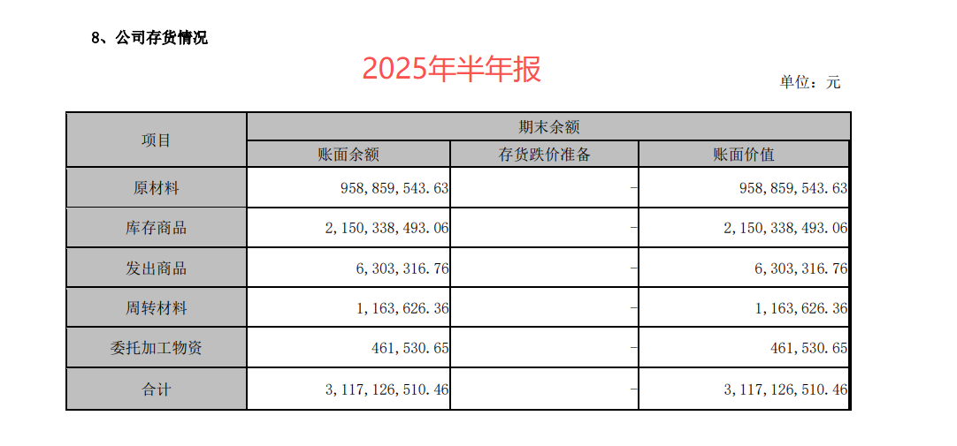 2025年半年报的库存情况