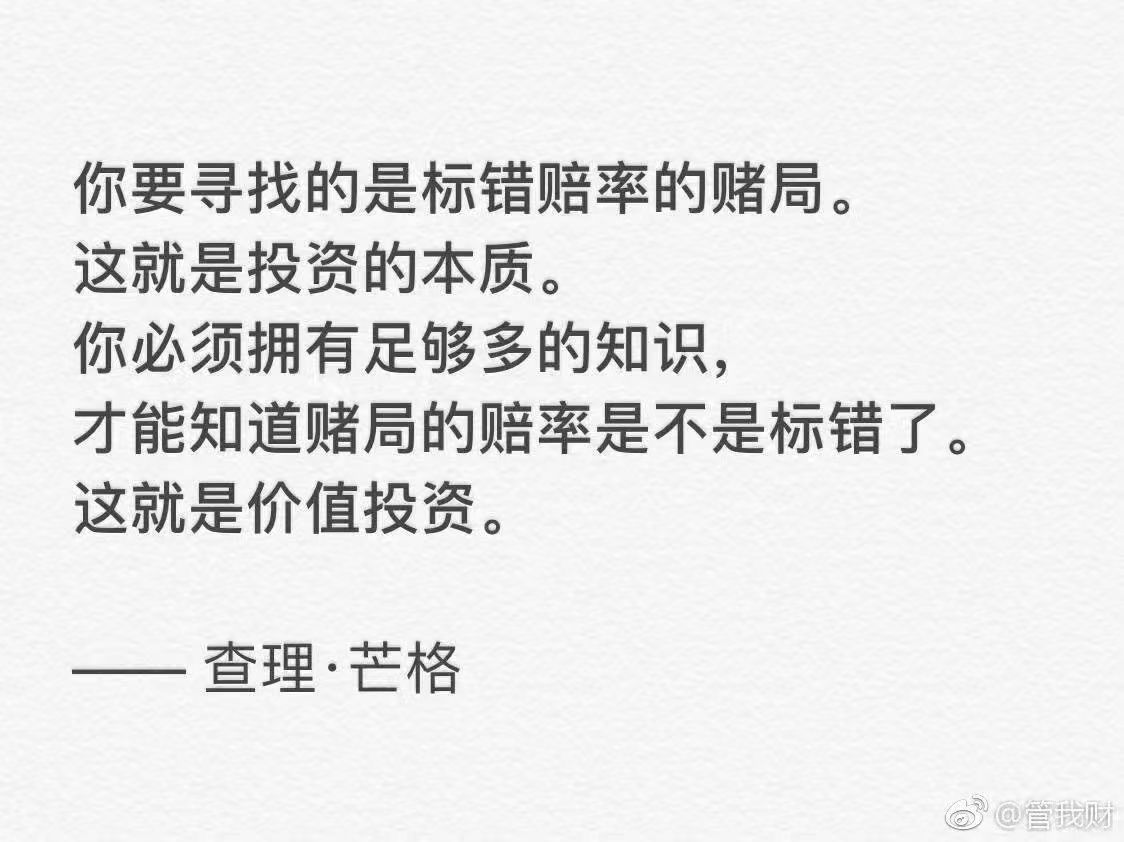 人一生中真正重要的机会非常少,关键在于做好准备,当少数几个绝佳机会来临时,能够果断、重仓抓住。(查理.芒格)