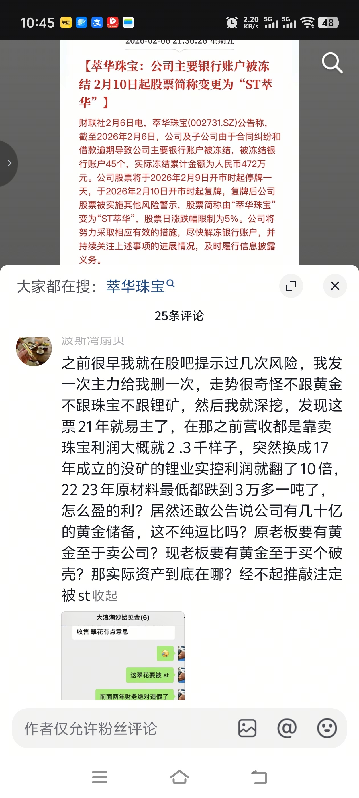 郑重声明:用户在财富号/股吧/博客等社区发表的所有信息(包括但不限于文字、视频、音频、数据及图表)仅代表个人观点,与本网站立场无关,不对您构成任何投资建议,据此操作风险自担。请勿相信代客理财、免费荐股和炒股培训等宣传内容,远离非法证券活动。请勿添加发言用户的手机号码、公众号、微博、微信及QQ等信息,谨防上当受骗!