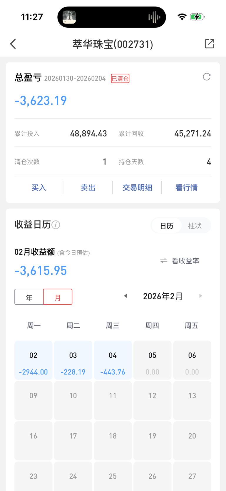 $萃华珠宝(SZ002731)$ 亏了3600割肉了,还自己夸自己说幸运