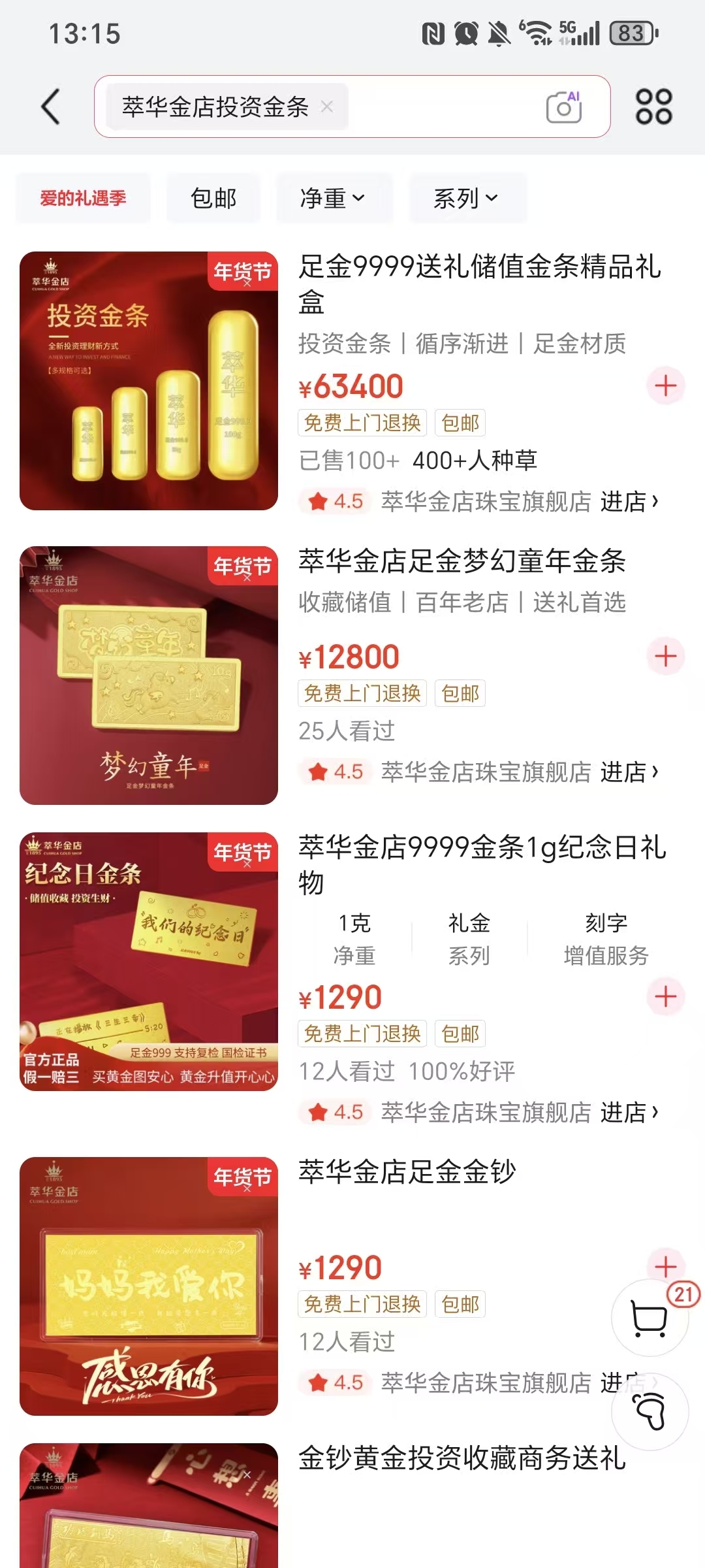 $萃华珠宝(SZ002731)$