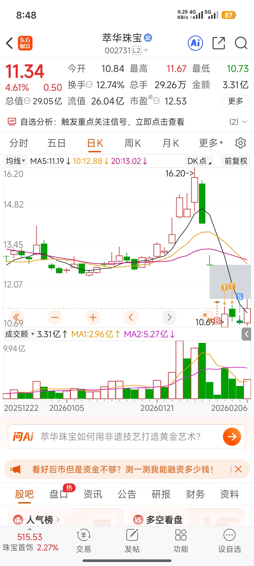 $萃华珠宝(SZ002731)$ 你们都是假的,只有我是真的