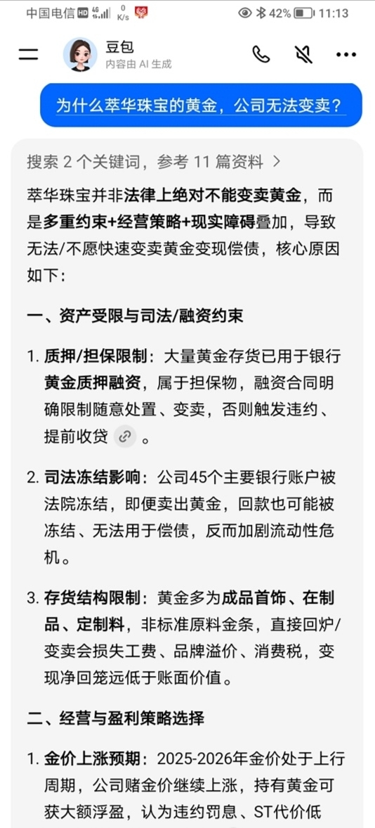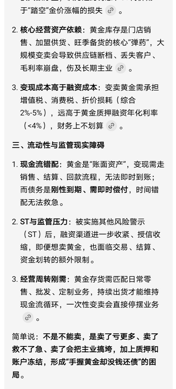 为什么萃华珠宝的黄金,公司无法变卖?