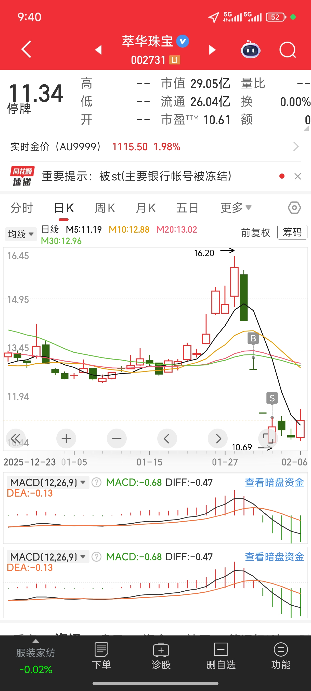 $萃华珠宝(SZ002731)$ 亏13个点跑路的