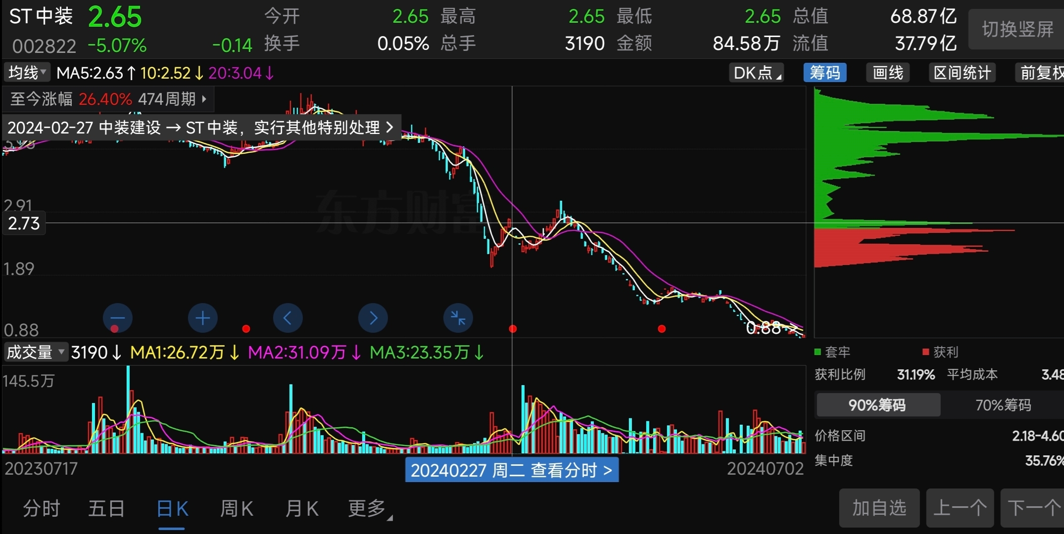 参考ST中装开始也是主要银行账户冻结带帽,最低跌到0.86元。