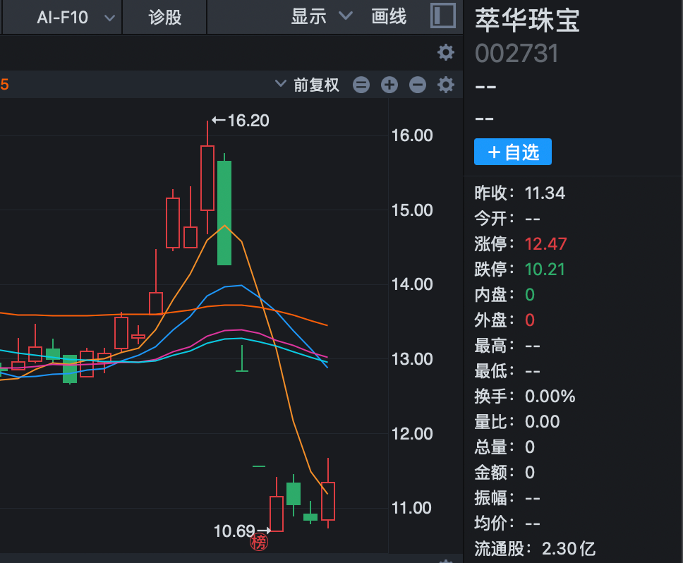 二级市场方面,萃华珠宝近期股价跌幅较大。1月29日至2月2日,公司股价曾连续3日跌停。