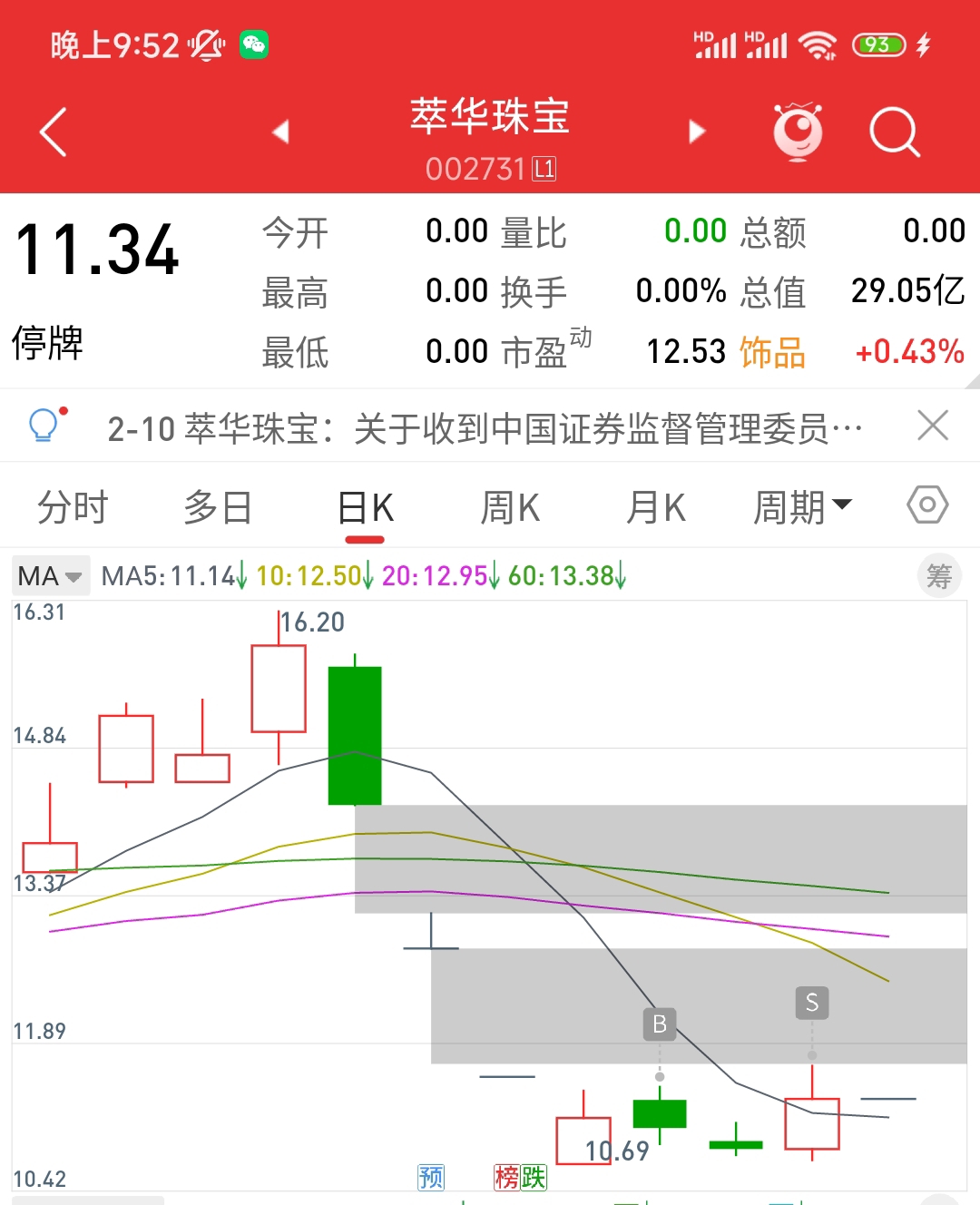 $萃华珠宝(SZ002731)$ 可真悬,还好找大师算了一卦,逃跑了。