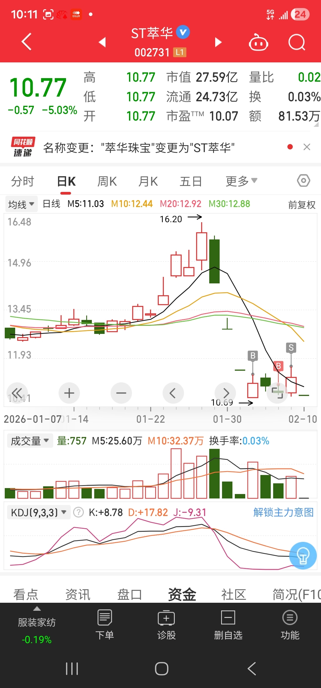 $ST萃华(SZ002731)$