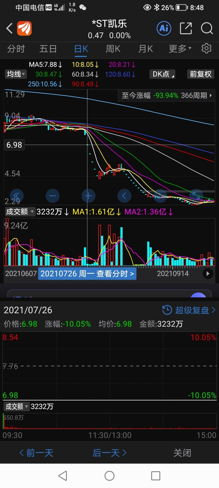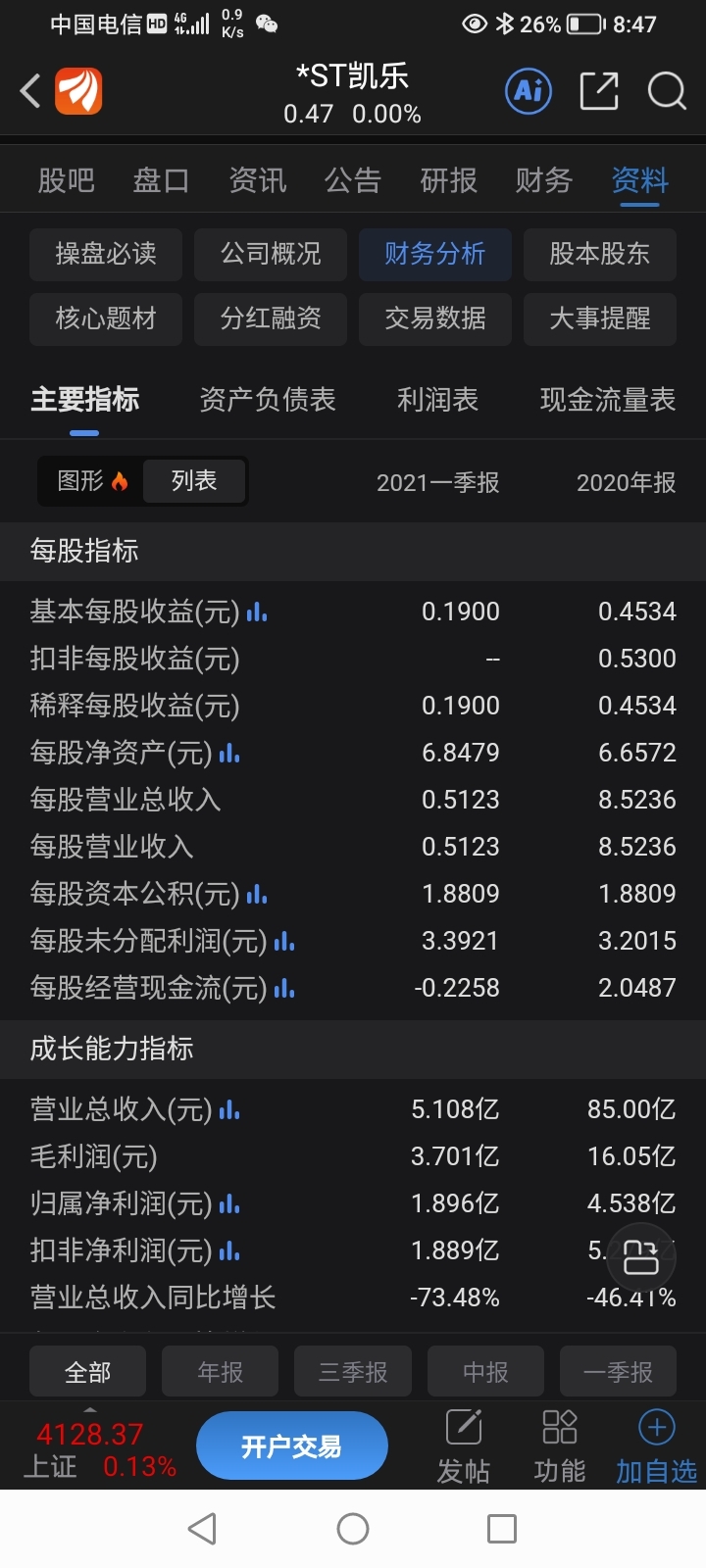资金链断裂暴雷的股票,其每股净资产、收益都是假的。ST凯乐,每股净资产近7元,结