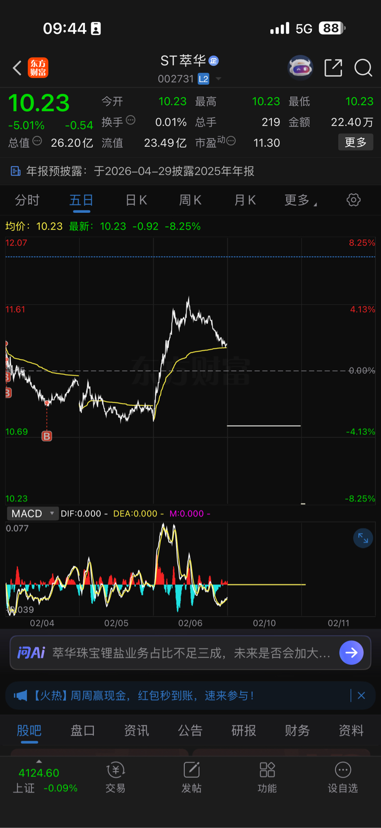 $ST萃华(SZ002731)$ 完全不慌,也没挂单,反正会涨回来的。。。交给时间就行