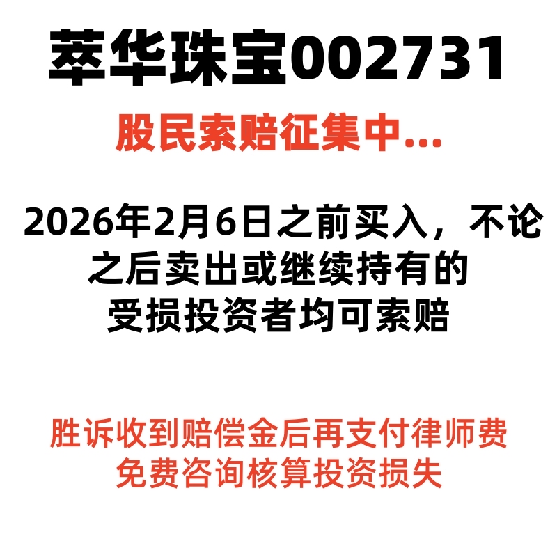 $ST萃华(SZ002731)$ 2026年2月6日之前买入002731萃华珠宝,且在2026年2月10日(含当日)之后卖出或继续持有者可留言
