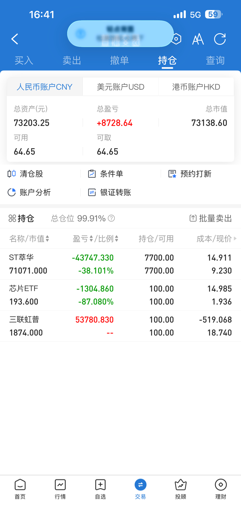 $ST萃华(SZ002731)$ 等8块补仓10万。